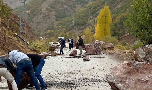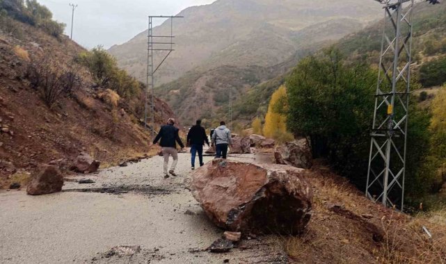 Van'ın Çatak ilçesinde dünden bu yana etkili olan yağışlar nedeniyle dağlık alandan kopan kaya parçaları yola düştü.