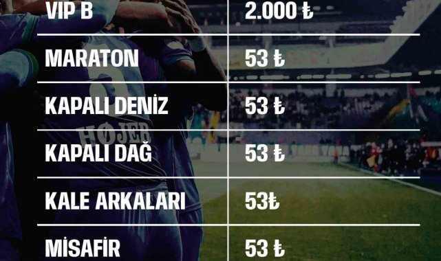 Rize'de Konyaspor ile oynanacak maç için VİP B haricindeki bütün tribünlerin biletleri 53 TL'den satışa çıktı.