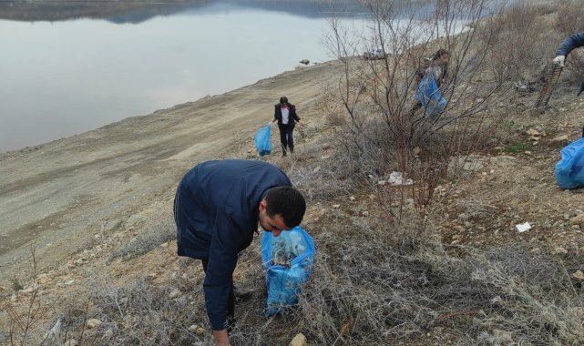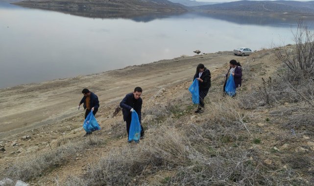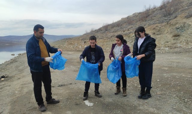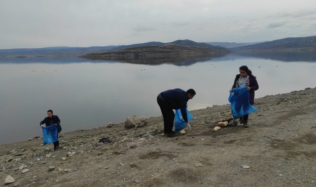 Çekerek Barajı'nda gönüllü olarak çöp toplayan aile herkese örnek oldu.