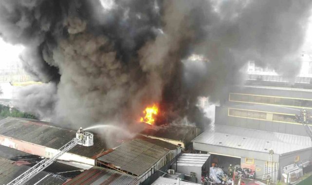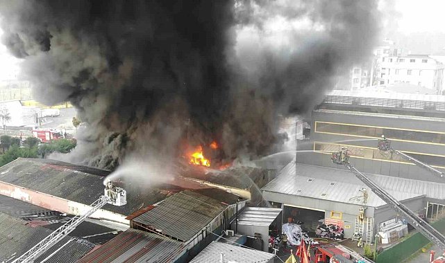 Çekmeköy'de lastik deposunda çıkan yangın havadan görüntülendi