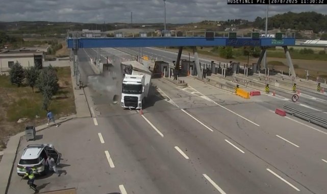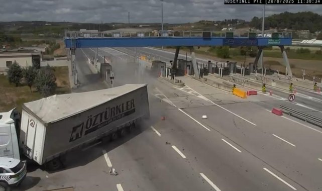 İstanbul'un Çekmeköy ilçesinde, gişelerde meydana gelen trafik kazası güvenlik kamerasına saniye saniye yansıdı. Kontrolden çıkan tırın hızla gişelere girdiği, ardından park halindeki jandarma aracına çarptığı anlar kameraya yansıdı.