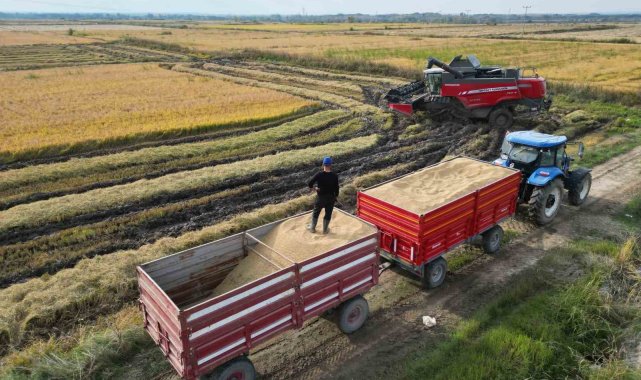 Türkiye'nin pirinç ihtiyacının yaklaşık yüzde 44'ünü karşılayan Edirne'de çeltik hasadı başladı. Son haftalarda etkili olan yağışlar, hasadı hem geciktirdi hem de zorlaştırdı.Haziran ayından bu yana yağış almayan Edirne'de son haftalarda etkili olan yağmur, çeltik tarlalarını adeta çamur deryasına çevirirken, üreticiler ise hasatta paletli biçerdöverleri tercih etti.Türkiye'nin çeltik ambarı olarak bilinen İpsala başta olmak üzere Edirne ve çevre köylerde başlayan hasatta verim üreticiyi sevindirse de fiyatlar beklentiyi karşılamadı.Yaklaşık 480-500 bin dekar alanda ekilen çeltikte 6 aylık emek dolu süreç sona erdi. Su içinde yetişen çeltik, bu yıl uzun süren kuraklığa rağmen Meriç Nehri üzerindeki proje ve Tunca Nehri'nde yapılan planlı su kullanımı sayesinde su sıkıntısı yaşamadan büyüdü.Hasat edilen çeltikler tarladan doğrudan kurutma tesislerine gönderiliyor. Biçim sahalarına yakın alanlarda kurulan makinelerde kömür yakıtıyla 60 dereceye ulaşan sıcaklıkta yapılan kurutma işlemi yaklaşık 8-10 saat sürüyor. Nem oranı düşürülen çeltik, kabuğundan ayrılarak fabrikalara sevk ediliyor.Üreticiler verimden memnunEdirne genelinde şu ana kadar alanın yüzde 40'ının biçildiği, biçim ve kurutma işlemlerinin 30 gün daha devam edeceği belirtiliyor. Üreticiler dekar başına ortalama 800 kilogram ürün aldıklarını ifade ediyor.Üretici Alparslan Bıyıklı, "Kuraklık endişesi yaşadık ama sezon sorunsuz geçti. Yağışlar biçimi geciktirdi. Kuruda biçerken biçerdöver 2,5 litre yakıyorsa, çamurda 4 litreye çıkıyor" ifadelerini kullandı.Salih Gürsoy da, "Yağmur biraz engel oldu ama verimden şikayetimiz yok. Buğdayda ve ayçiçeğinde yüzümüz gülmemişti, inşallah pirinçte güler" dedi.Hamit Sarı ise Üyüklütatar köyünde su sorunu yaşamadıklarını belirterek, "Meriç projesi sayesinde pompalar çalıştı, ürünümüzü zamanında aldık" diye konuştu.