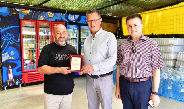 Çevreci bakkala Başkan Öküzcüoğlu'ndan plaket