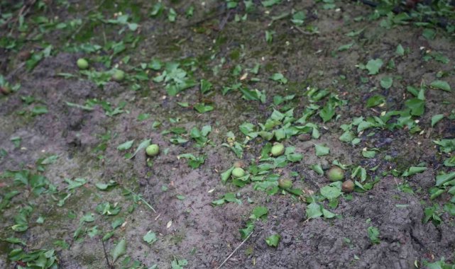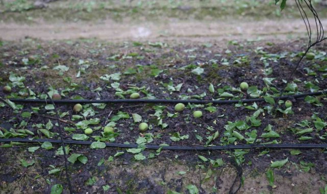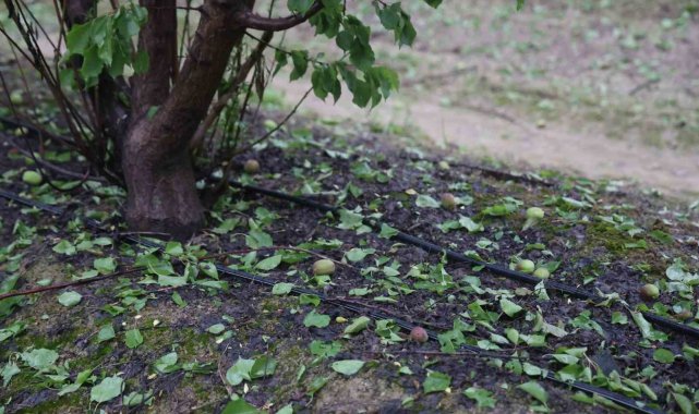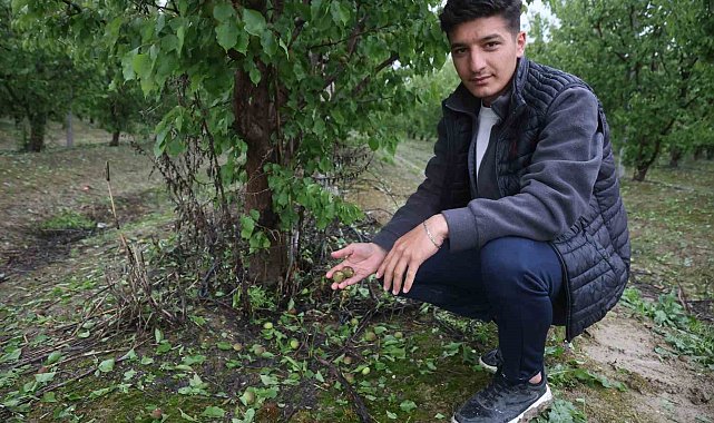 Hatay'da etkili olan dolu yağışı, Amik Ovası'ndaki tarım arazilerinde zarara yol açtı. Kayısı bahçesi zarar gören çiftçi Adnan Abay, fındık büyüklüğünde dolu yağdığını belirtti.