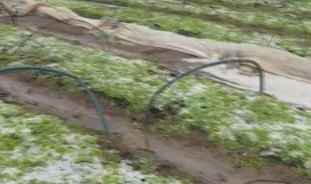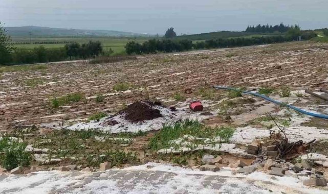 Çevreyi beyaza bürüyen fındık büyüklüğündeki dolu tarım arazilerini vurdu