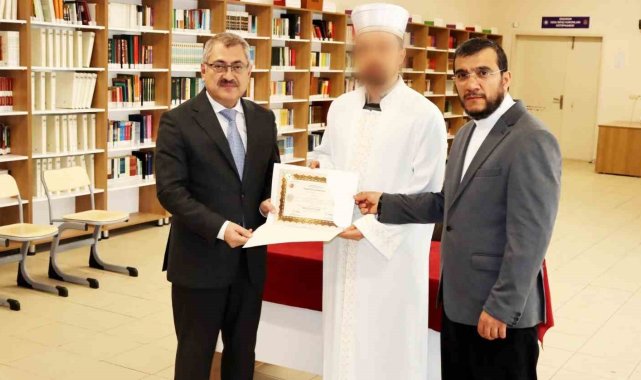 Erzurum'da cezaevinde hafızlık eğitimini başarıyla tamamlayan hükümlüler, düzenlenen törenle cübbelerini giyerek icazetlerini aldılar.