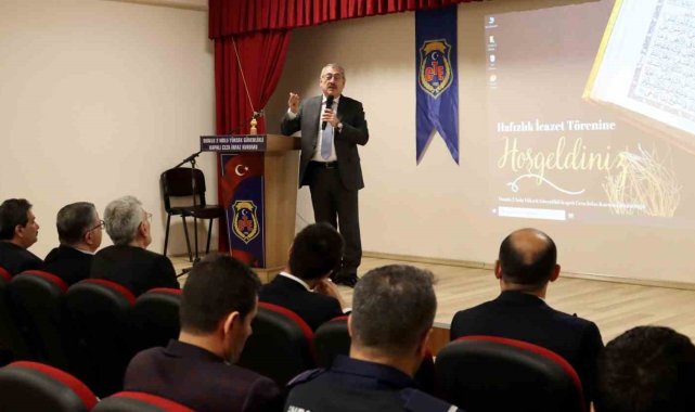 Erzurum'da cezaevinde hafızlık eğitimini başarıyla tamamlayan hükümlüler, düzenlenen törenle cübbelerini giyerek icazetlerini aldılar.Erzurum Dumlu 2 Nolu Yüksek Güvenlikli Kapalı Ceza İnfaz Kurumu, anlamlı ve bir programa ev sahipliği yaptı. Kurum bünyesinde yürütülen eğitim çalışmaları meyvesini vererek, bu yıl 4.'sü düzenlenen "Hafızlık Bitirme ve Cübbe Giydirme Töreni" büyük bir coşkuyla gerçekleştirildi. Törene katılım yoğun olurken, din görevlilerinin desteği göz doldurdu. Programa İl Müftüsü Yaşar Çapçı, Cumhuriyet Savcısı Mustafa Burak Okurer, Cezaevi Müdürü Mustafa Akay ve kurum müdürleri katılarak hafızların sevincine ortak oldular.İl Müftüsü Yaşar Çapçı, törende yaptığı konuşmada Kur'an-ı Kerim'i kalplerine nakşeden hafızları tebrik ederek, bu zorlu ama bir o kadar da şerefli süreci başarıyla tamamlamanın büyük bir azim örneği olduğunu vurguladı. Dualar eşliğinde cübbelerini giyen yeni hafızlar, ellerindeki icazet belgeleriyle hem kendileri hem de davetliler için unutulmaz bir tablo oluşturdular.Tören, toplu fotoğraf çekimi ve yapılan iyi dilek temennileriyle sona erdi.
