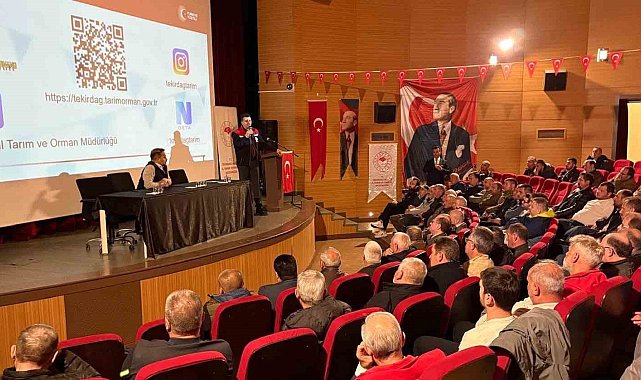 Tekirdağ'ın Muratlı ilçesinde düzenlenen toplantıda çiftçilere tarımsal desteklemeler ve yeni üretim modeli hakkında bilgi verildi.