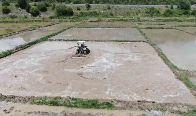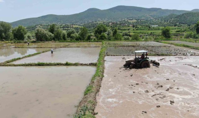Türkiye'nin önemli çeltik üretim merkezlerinden olan Kastamonu'nun Tosya ilçesinde, Ilgaz Dağı'nın kar sularıyla beslenen tarlalarda çeltik ekimine başlandı. Dizlerine kadar ulaşan suyun içinde ter döken çiftçiler, sarıkılçık pirinci için yoğun mesai harcıyor.
