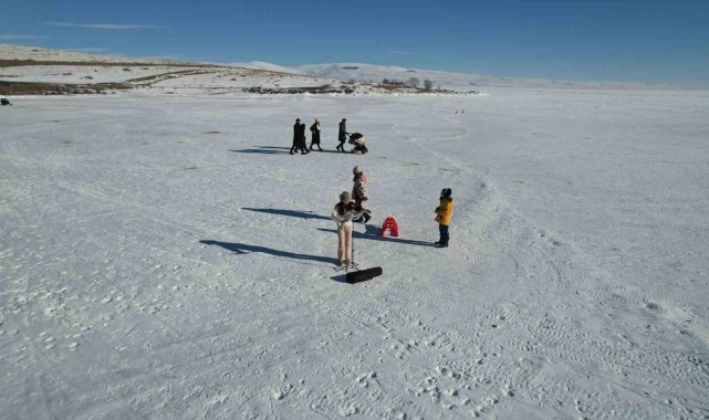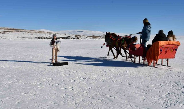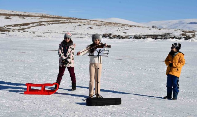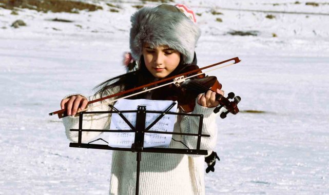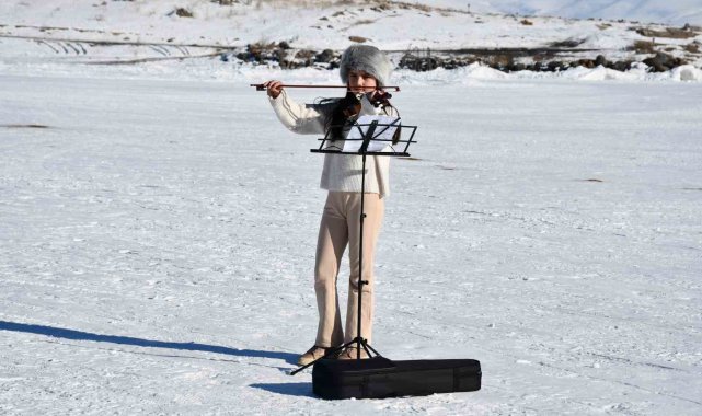 Buz tutan Çıldır Gölü, her gün bir farklı görüntüye ev sahipliği yapıyor. 11 yaşındaki minik kemancı Mihrimah Ela İrtegün, dondurucu soğuğa rağmen yüzeyi tamamen donan Çıldır Gölü üzerinde keman çalarak hayalini gerçekleştirdi.