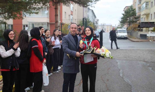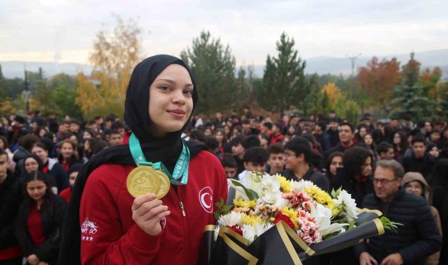 Çin'den altın madalyayla dönen Afra Kılınç'a meşaleli karşılama