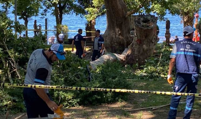Kocaeli'nin Gölcük ilçesinde çınar ağacından kopan dalın üzerlerine düşmesi sonucu yaralanan 3 kişiden 1'i hayatını kaybetti.