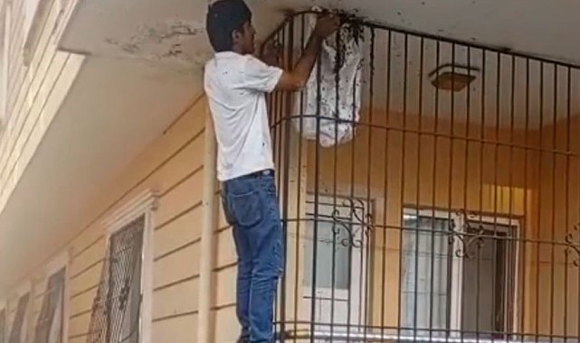 Siirt'in Kurtalan ilçesinde Muhammet Rahmi Mikyas isimli arıcı, bir evde bulunan arı oğulunu çıplak elle topladı.