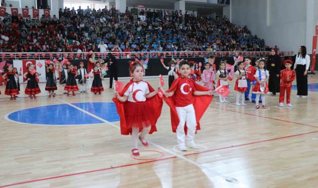 Şırnak'ın Cizre ilçesinde 100. Yıl Kapalı Spor Salonunda yüzlerce çocuk ve ailenin katılımıyla düzenlenen programda, 23 Nisan Ulusal Egemenlik ve Çocuk Bayramı coşkuyla kutlandı.