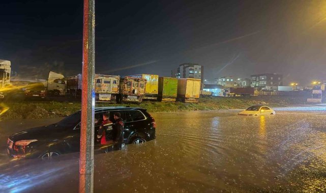 Şırnak'ın Cizre ilçesinde gece saatlerinde aniden bastıran şiddetli sağanak yağış hayatı felç etti. Yeni Şırnak Yolu üzerinde araçlarında mahsur kalan 3 vatandaş, itfaiye ekiplerinin operasyonla kurtarıldı.Cizre'de son 10 yılın en yağışlı dönemi yaşanırken, gece saatlerinde etkisini artıran sağanak yağış cadde ve sokakları adeta göle çevirdi. Kuraklık sonrası beklenen yağışlar çiftçiyi sevindirse de, şehir merkezinde hayatı durma noktasına getirdi. Edinilen bilgilere göre; Yeni Şırnak Yolu, Cizre Park AVM mevkiinde seyir halinde olan iki araç, aniden yükselen yağmur sularının ortasında kaldı. Motorun stop etmesiyle suyun ortasında mahsur kalan 3 kişi, araçtan çıkamayarak yardım bekledi. Çevredeki vatandaşların ihbarı üzerine bölgeye ivedilikle Cizre Belediyesi İtfaiye Müdürlüğü ekipleri sevk edildi.Kısa sürede olay yerine ulaşan itfaiye ekipleri, bel seviyesine ulaşan su birikintisinin içinde mahsur kalan vatandaşlara ulaştı. Ekiplerin titiz çalışması sonucu araç içerisinden güvenli bir şekilde tahliye edilen 3 kişi, sel sularından kurtarılarak güvenli bölgeye alındı. Kurtarılan vatandaşların sağlık durumunun iyi olduğu öğrenildi.