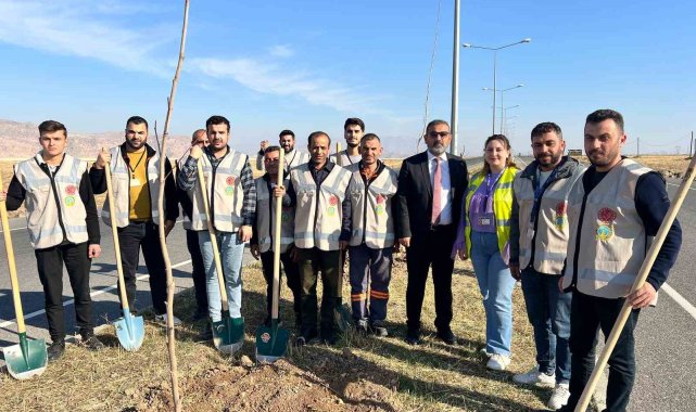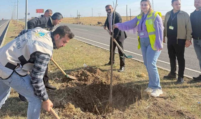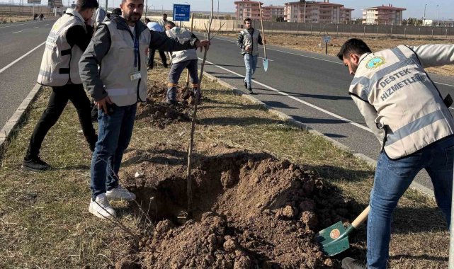 Cizre'de havalimanı yolu 450 fidan ile yeşilleniyor