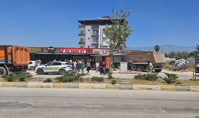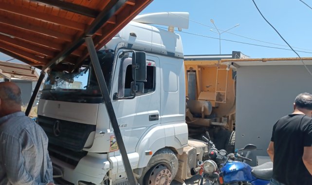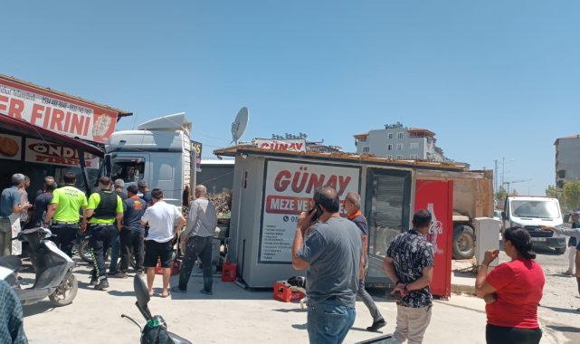 Hatay'da 16 yaşındaki ehliyetsiz kamyon sürücüsünün kontrolünü kaybederek önce konteyner iş yerine ardından da fırına çarptığı anlar ve vatandaşların ezilmekten saniyelerle kurtulmaları anbean güvenlik kamerasına yansıdı. Ortalığı birbirine katan çocuk sürücüye ve araç sahibine 98 bin 703 TL idari para cezası uygulandı.Kaza, Defne ilçesi Subaşı Mahallesi'nde yaşandı. 16 yaşındaki ehliyetsiz sürücü M.S.A. idaresindeki 31 RS 882 plakalı kamyon, sürücüsünün kontrolünden çıkarak önce konteyner iş yerine ardında fırının tentesine çarptı. Sürücüsünün kontrolünü kaybettiği kamyonun, faciaya ramak kala tenteye çarpıp durduğu ve fırında çalışan işçilerin panik anları güvenlik kamerasına yansıdı. Kazayı görenlerin durumu 112 Acil Çağrı Merkezi'ne bildirmesi üzerine olay yerine polis ve ambulans ekipleri sevk edildi. Kısa sürede bölgeye gelen sağlık ekipleri, hafif yaralanan sürücü M.S.A.'ya müdahale etti. Polis ekiplerinin incelemelerin ardından ehliyetsiz araç kullanmaktan 16 yaşındaki kamyon sürücüsüne ve araç sahibine çeşitli maddelerden 98 bin 703 TL idari para cezası uygulandı. Güvenlik kamerasına yansıyan görüntülerde; fırının önünde bulunan ve içeride çalışan vatandaşların saniyelerle ezilmekten kurtuldukları görüldü."Kısacası ölümden kurtulduk ve o an kalbim duracak gibi oldu"Kamyonun üzerine geldiğinde kalbinin duracak gibi olduğunu hisseden Memiş Akçakaya, "Biz içeride fırında çalışıyorduk. Ben hamur aldım açıyordum. Birkaç hamuru açtıktan sonra bir tekerin kayma sesini duydum ve oraya doğru baktım. Arkamı bir döndüğümde kamyon üstüme geliyordu. Ben can havliyle içeriye koştum. Sonra camlar patladı. Dışarı çıktığımızda her yer toz duman içerisindeydi. Ben karşıda duran mezeciye bakmaya gittim. Orada 2 kadın çalışıyordu. Kısacası ölümden kurtulduk. O an kalbim duracak gibi oldu. Ellerim titredi. Kalbim o an çok hızlı attı" ifadelerini kullandı.