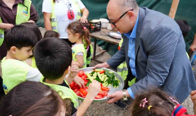 Çocuk serasında minikler yetiştirdikleri sebzeleri hasat etti