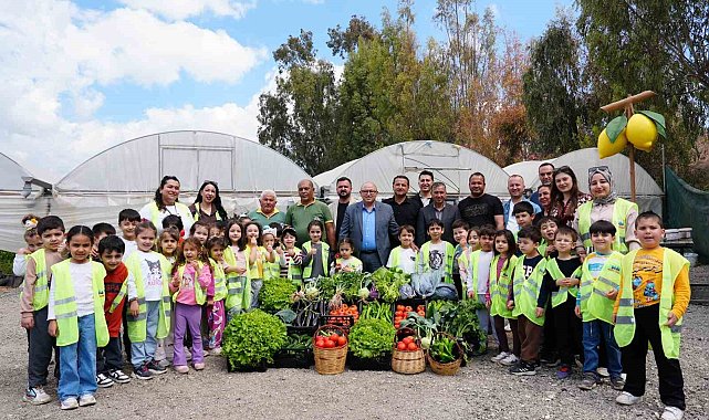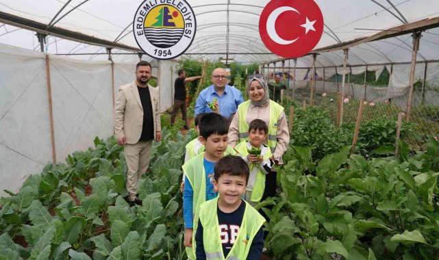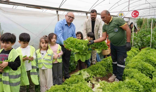 Mersin'in Erdemli ilçesinde kurulan 'çocuk serası'nda minik öğrenciler yetiştirdikleri sebzelerin hasadını yaparak hem üretmeyi öğrendi hem de doğa bilinci kazandı.
