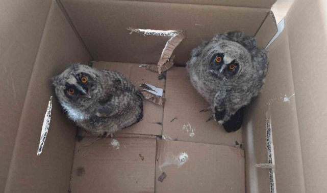 Çorum'un Sungurlu ilçesinde parkta oynayan çocuklar tarafından bulunan 2 yavru puhu kuşu, ekiplere teslim edildi.