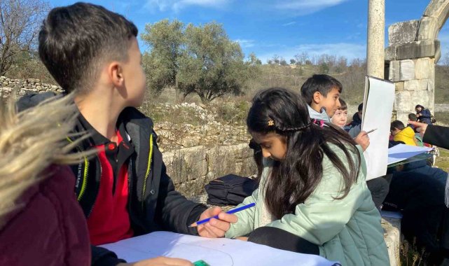 Muğla Uluslararası Gençlik Merkezi tarafından başlatılan "Çocuklar Tarihin İçinde Öğreniyor" programı kapsamında, Yatağan Stratonikeia Antik Kenti'nde anlamlı bir etkinlik düzenlendi.Etkinlikte öğrenciler, kazı başkanlığı ekibi rehberliğinde tarihi alanları ziyaret ederek kazı çalışmalarına dair bilgi aldılar. Bu sırada, tarihin içinde adeta bir yolculuğa çıkan öğrenciler, öğrendiklerini sahada uygulama fırsatı buldu. Etkinlik kapsamında, Görsel Sanatlar Öğretmeni koordinasyonunda bir desen atölyesi çalışması gerçekleştirildi.Tarihi alanlarda tüm önemli yapıları gezen öğrenciler, Muğla Uluslararası Gençlik Merkezi gönüllü gençleri ve merkez eğitmenleriyle birlikte tarihi yapıların desenlerini çizerek sanatsal bir çalışma yaptı.Programın amacının çocukların sanatsal ve kültürel gelişimlerini desteklemek olduğunu belirten yetkililer, atölyelerde öğrendiklerini tarihi mekanlarda uygulama fırsatı bulan öğrencilerin heyecanının ve mutluluğunun görülmeye değer olduğunu ifade ettiler.MSKÜ Sınıf Öğretmenliği bölümü öğrencisi ve Gençlik Merkezi gönüllü Berkcan Çelik, etkinlikle ilgili olarak şu görüşlerini paylaştı:"Gençlik Merkezi gönüllü bir genç olarak burada çocuklarla birlikte olmaktan çok mutluyum. Okulda öğrendiklerimizi burada çocuklarla birlikte deneyimlemek bence paha biçilemez. Çocuklarla birlikte çok güzel resimler yaptık ve ilk defa bu antik kente gelme şansım oldu. Bizlere bu imkanı tanıyan Muğla Gençlik ve Spor İl Müdürlüğümüz ile Bakanlığımıza çok teşekkür ederim "dedi.
