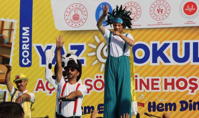 Çorum'da düzenlenen "Yaz Okulları Şenliği"ne katılan çocuklar, düzenlenen etkinlikler ve oyunlarla doyasıya eğlendi.Çorum'da okulların kapanmasıyla birlikte Çorum Belediyesi tarafından açılan yaz okullarında eğitim gören binlerce çocuk, düzenlenen "Yaz Okulları Şenliği"nde doyasıya eğlendi. Çorum Millet Bahçesi'ni dolduran çocuklar ve aileleri, gün boyu süren etkinliklerle keyifli bir gün geçirdi. Adeta bir festivale dönüşen şenlik alanında kurulan platformlarda ve stantlarda gün boyu etkinlikler düzenlendi. Palyaçolar eşliğinde oyunlar oynayan çocuklar, masa tenisi turnuvası, halk oyunları, güreş ve jimnastik akrobasi gösterileriyle gönüllerince eğlendi. Çocuklar etkinliklerin tadını çıkarırken, aileleri de onların bu coşkusuna ortak oldu. Şenlikte yapılan çekilişle çocuklara bisiklet hediye edildi.Programa katılan Çorum Belediye Başkanı Halil İbrahim Aşgın ve Gençlik ve Spor İl Müdürü Mustafa Demirkıran, çocukların yaz tatilini verimli geçirmesi için yapılan çalışmaların önemine dikkat çekti. Konuşmaların ardından Başkan Aşgın ve Müdür Demirkıran, çocukların heyecanına ortak oldu.