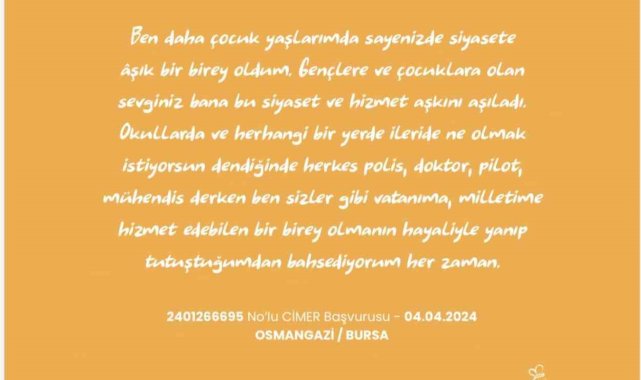 Cumhurbaşkanlığı İletişim Merkezi (CİMER), devletten talebi, geleceğe dair hayali, şikayeti, önerisi olan çocuklar için de başvuru merkezi olmaya devam ediyor. CİMER'e yazan binlerce çocuk, merak ettikleri konularda sorularını yöneltti.23 Nisan Ulusal Egemenlik ve Çocuk Bayramı'nı kutlayan çocuklar, Türkiye hayaline ilişkin mesajlarını CİMER üzerinden paylaştı. Çoğu Cumhurbaşkanı Recep Tayyip Erdoğan'a yazılan ve 'Cumhur Dede' hitabıyla başlayan mesajlarında çocuklar taleplerde bulunurken, teşekkürlerini iletip, önerilerini de sundular. 23 Nisan hediyesini isteyen, kar yağışı sonrası okulların tatil olmasını talep eden, soy ağacını, kan grubunu öğrenmek isteyen, kreş dahil okumaya hangi yıl başladığını soran, mahallesinde yapılan park için memnuniyetini dile getiren çocuklar CİMER'e yazdılar.CİMER'e yapılan başvurularda bazı çocuklar 'Doğumuma kim yardım etti öğrenmek istiyorum', 'Ailemde şehit ya da madalya alan biri var mı?' gibi sorular yöneltirken, bazı çocuklar ise somut proje önerilerini paylaştı. Bir çocuk, ambulans ve itfaiye araçlarının trafik ışıklarını otomatik olarak kontrol edebileceği bir sistem önerisinde bulunurken, bir diğeri deniz akıntılarından enerji üretimine yönelik fikirlerini sıraladı. Bir başka çocuk yaz aylarında yaşanan boğulma vakalarına karşı nehir kenarlarında güvenli yüzme alanları oluşturulmasını isterken, okullarda bölgesel sorunlara yönelik proje çalışmaları yapılması önerisi de getirildi. 'Sizin gibi polis olmak istiyorum' diyerek hayalini paylaşan çocukların yanında, tedavi sürecinde kendisine destek olan sağlık çalışanlarına teşekkür mesajını ileten, öğretmenlerine teşekkür mesajları yazan çocukların da olduğu belirtildi.Çoğu başvuru somut karşılık bulduCİMER aracılığıyla gönderilen çoğu başvurunun somut karşılık bulduğu belirtildi. İstanbul'da yaşayan bir çocuğun çok sevdiği oyuncağının zarar görmesi üzerine yaşadığı üzüntüyü 'Onu çok seviyordum, aynısını bulamadık' sözleriyle yaptığı başvuru üzerine aynı oyuncak kendisine ulaştırıldı. Down sendromlu Melik'in polislerle doğum günü kutlama hayali de gerçekleştirildi. Talasemi hastası bir gencin özel harekat polisi olma hayali, temsili görevle gerçeğe dönüştü. Gaziantep'te yaşayan ve asker olmayı hayal eden bir öğrencinin maddi imkansızlık nedeniyle katılamadığı TEKNOFEST için destek talebi içeren başvurusu üzerine öğrencinin ulaşımı sağlanarak, festivale katılımı sağlandı."Gazze'ye barış için gitmek istiyorum" başvurusu dikkat çektiCİMER'e yapılan başvurular, çocukların sadece talepte bulunan değil aynı zamanda çözüm üreten bireyler olarak farkındalık seviyelerini de ortaya koydu. Başvurularda okullarda görgü kurallarının daha etkin öğretilmesi, 'Sınavlar bizi çok strese sokuyor' diyerek sınav sisteminin daha adil ve psikolojiyi gözeten şekilde düzenlenmesi, çevre için 'Daha az plastik kullanalım' çağrısıyla sıfır atık uygulamalarının artırılması önerileri yanında sokak hayvanları için 'Barınak yapılsın, ben de gönüllü olmak istiyorum' sözleriyle sosyal hizmetlere katkı bildirimlerinin de yapıldığı kaydedildi. CİMER'e yapılan başvurularda, çocukların toplumsal sorumluluk bilincini öne çıkaran 'Deprem olursa ne yapmalıyız, daha fazla eğitim verilsin', 'Siber zorbalık için önlem alınsın', 'Mahallemizde daha fazla yeşil alan olsun' başvuruları yanında global meselelere karşı hassasiyeti yansıtan 'Gazze'ye barış için gitmek istiyorum' başvurusu da dikkat çekti.CİMER'e Renk Kat Resim Yarışması ilgi gördüCumhurbaşkanlığı İletişim Başkanlığı'nın 23 Nisan Ulusal Egemenlik ve Çocuk Bayramı dolayısıyla düzenlediği CİMER'e Renk Kat Resim Yarışması da bu yıl çocuklardan yoğun ilgi gördü. Proje, Türkiye'nin dört bir yanından iletilen resimler ve gösterilen ilgiyle çocukların devletle iletişimini güçlendiren ve farkındalık oluşturan bir kampanyaya dönüştü. Yarışma sayesinde çocuklar CİMER'i daha yakından tanıdıkları gibi, resimlerinin yanı sıra talep ve önerilerini Çocuk CİMER platformu üzerinden iletti.Çocuk CİMER Platformu çocuklara özel bir başvuru platformu olarak önümüzdeki süreçte aktif hale getirilecekVatandaşların talep, öneri ve memnuniyetlerini iletebildiği bir platform olan CİMER; 23 Nisan'ın ruhuna uygun olarak çocukların düşüncelerini özgürce ifade edebildiği, dinlendiği ve dikkate alındığı bir iletişim zemini sunuyor. CİMER'e Renk Kat Resim Yarışması'nda çocukların resimlerini paylaştıkları Çocuk CİMER Platformu'nun çocuklara özel bir başvuru platformu olarak önümüzdeki süreçte aktif hale getirileceği kaydedildi. Çocuk CİMER ile çocukların CİMER'de daha aktif bir şekilde yer alacağı, eğitici içerikleri ve iletişim çağına ilişkin farkındalık oluşturan uzantılarıyla farkındalıklarının arttırılacağı açıklandı.