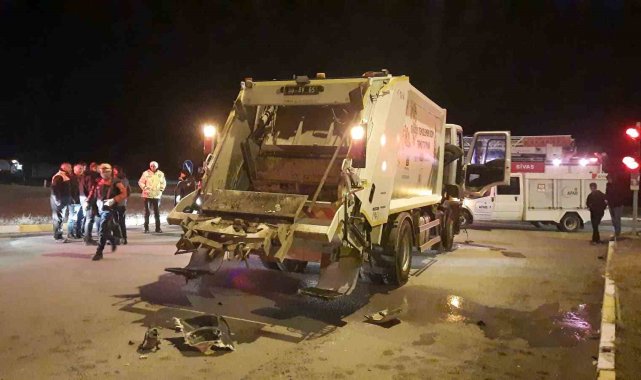 Sivas'ta meydana gelen trafik kazasında çöp kamyonu yolcu otobüsüne arkadan çarptı, 2 kişi yaralandı.