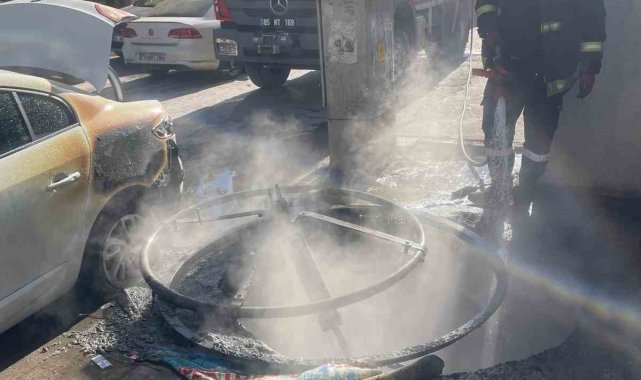 Çöpe atılan yanıcı madde otomobili yaktı