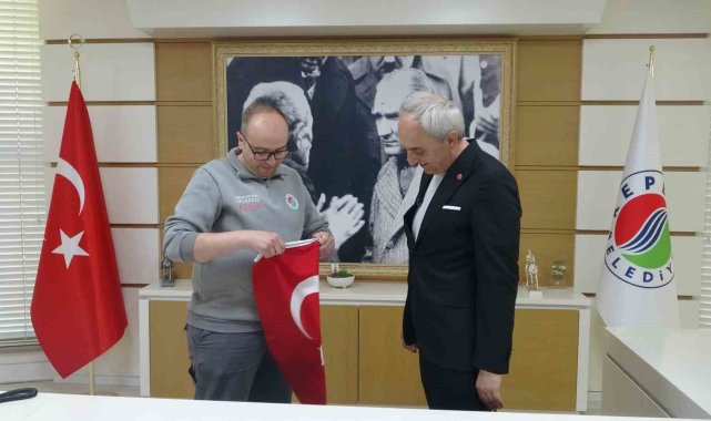 Çöpte bulduğu bayrağı alıp temizleyen ve kamyonuna asan Kepez Belediyesi çalışanına başkandan plaket