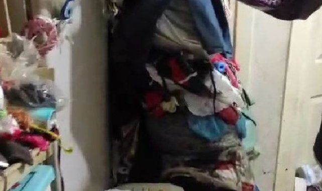 Tekirdağ Çorlu'da bir apartman dairesinde tıka basa dolmuş çöpler nedeniyle apartman sakinleri çözüm bekliyor.