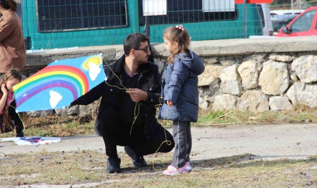 Çorum Belediyesi tarafından 29 Ekim Cumhuriyet Bayramı kutlamaları kapsamında düzenlenen uçurtma şenliğinde çocuklar ile ailelerinin uçurduğu uçurtmalar gökyüzünü süsledi.
