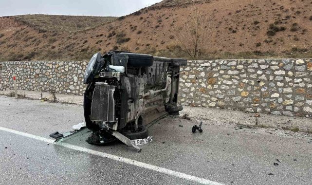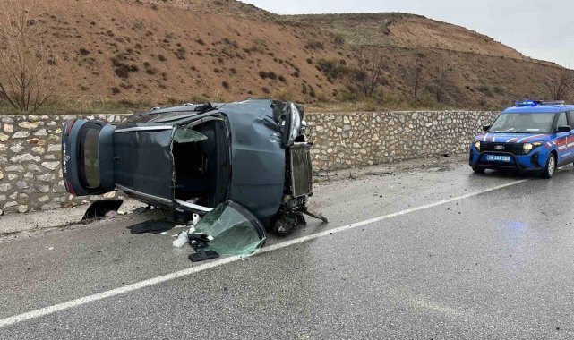 Çorum'un Alaca ilçesinde tabelaya çarparak devrilen otomobildeki 5 kişi yaralandı.