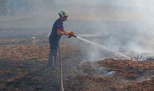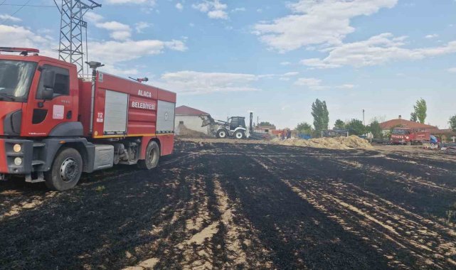Çorum'un Alaca ilçesinde elektrik direğinden çıkan kıvılcımlar, 3 ayrı noktada yangına sebep oldu.Olay, Alaca ilçesi Çal köyünde meydana geldi. Edinilen bilgiye göre, köyün girişindeki bir elektrik direğinden çıkan kıvılcımlar, rüzgarın da etkisiyle çevresindeki kuru otları tutuşturarak 3 farklı noktada yangına sebep oldu. Alevlerin yükseldiğini gören vatandaşlar, durumu fark eder etmez 112 Acil Çağrı Merkezi'ne bildirdi. İtfaiye ekipleri tarafından söndürülen yangında köy mezarlığı, 250 adet sulama borusu ve 50 adet sulama fıskiyesi zarar gördü.Öte yandan, ilçeye bağlı Avutmuş köyündeki bir tarlada çıkan yangında ise 50 adet balya ve 20 dönüm tarla yanarak kül oldu. Yangın itfaiye ekipleri tarafından söndürüldü. Jandarma ekipleri yangınlarla ilgili inceleme başlattı.