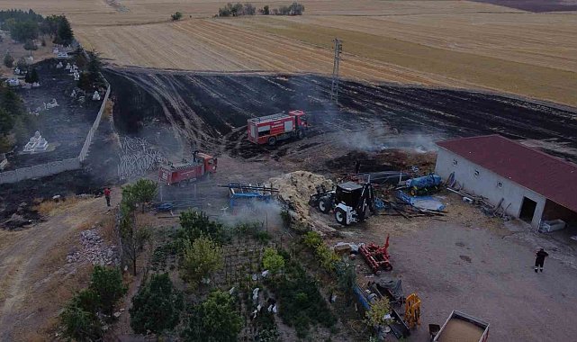 Çorum'da elektrik direğinden çıkan kıvılcım yangına sebep oldu