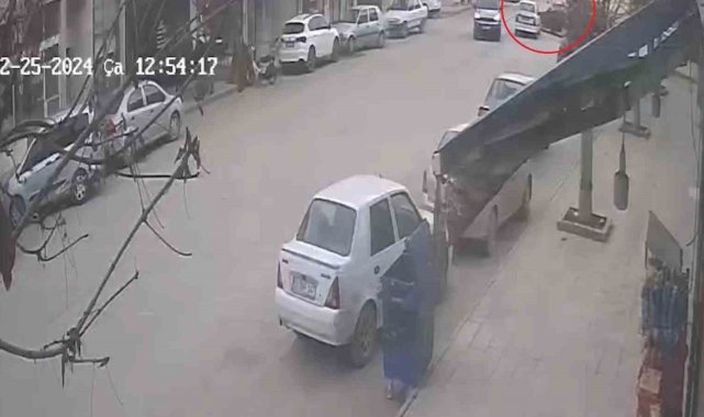 Çorum'da iki otomobilin kafa kafaya çarpıştığı kaza, bir iş yerinin güvenlik kamerasınca anbean kaydedildi.