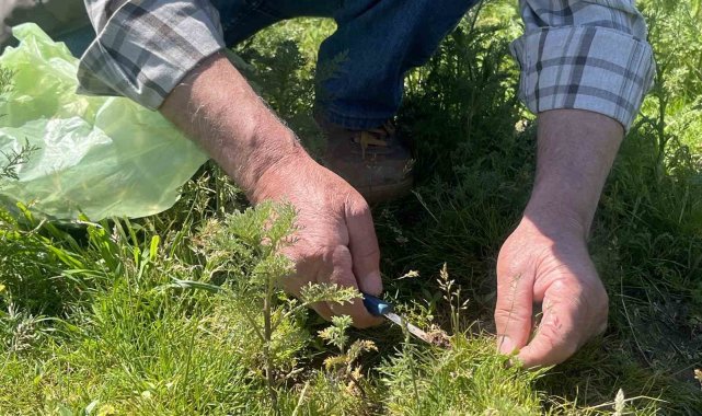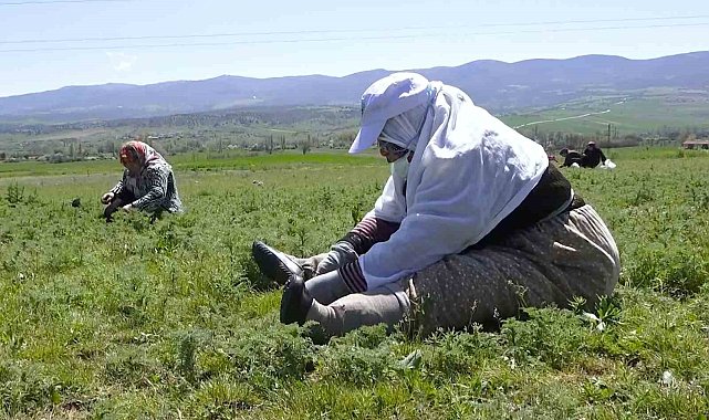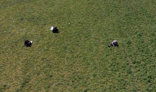Çorum'da ilkbaharda doğada kendiliğinden yetişen "madımak otu"nu toplamak için vatandaşlar yoğun mesai harcıyor.