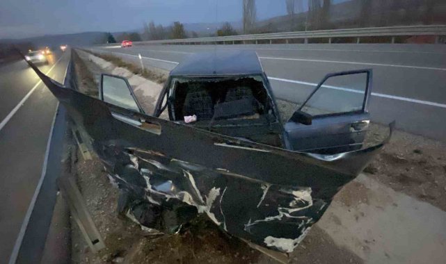 Çorum'da otomobil bariyere çarptı: 2 yaralı