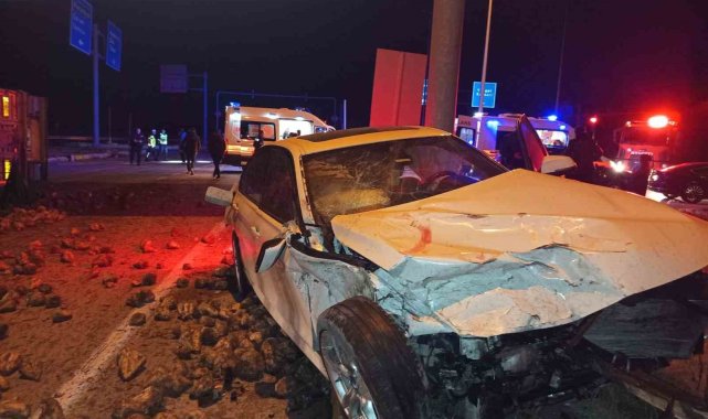 Çorum'da şeker pancarı yüklü tır ile otomobil çarpıştı: 3 yaralı