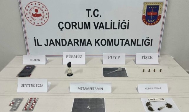 Çorum'da jandarma ekiplerince uyuşturucuyla mücadele kapsamında düzenlenen uyuşturucu operasyonlarında yakalanan 59 şüpheliden 7'si tutuklandı.Edinilen bilgiye göre, Çorum İl Jandarma Komutanlığı ekipleri tarafından uyuşturucuyla mücadele kapsamında, il merkezi ve ilçelerde belirlenen adreslerde aramalar yapıldı. Yapılan aramalarda 1 kilo 58 gram kubar esrar, 690 adet captagon, 272 gram sentetik kannabinoid bonzai, 217 adet sentetik ecza hapı, 161 gram metamfetamin, 1 gram kokain, 1 adet extacy hap ve 14 adet uyuşturucu kullanma aparatı ele geçirildi. Uyuşturucu ticaretinden elde edildiği değerlendirilen 160 bin 765 TL nakit paraya da el konuldu.Operasyonlar kapsamında gözaltına alınan 59 şüpheli, işlemlerinin ardından adliyeye sevk edildi. Hakim karşısına çıkarılan şüphelilerden 7'si tutuklanırken, diğer şüpheliler hakkında adli işlem yapıldı.