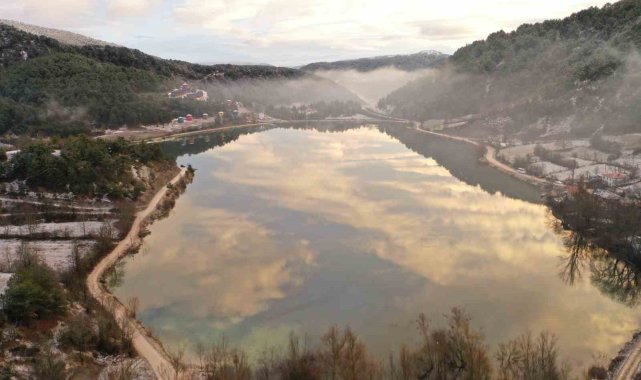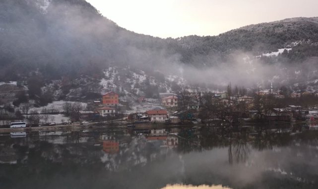 Bolu'nun doğa harikası mekanlarından Çubuk Gölü'nde dağların yamacından süzülen bulutlar göl yüzeyinde görsel şölen oluşturdu.