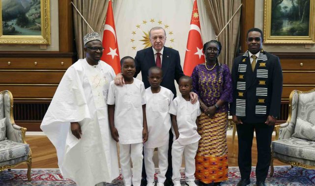 Cumhurbaşkanı Recep Tayyip Erdoğan, Lübnan, Gana, Filistin, Gine, Japonya büyükelçilerini kabul etti.Cumhurbaşkanlığı Külliyesi'ndeki kabulde, Lübnan Büyükelçisi Munir Anuti, Gana Büyükelçisi Abdul Nasiruddin, Filistin Büyükelçisi Nasri Halil Salim Ebu Ceyş, Gine Büyükelçisi Abdulaye Fofana ve Japonya Büyükelçisi Masami Tamura, Cumhurbaşkanı Erdoğan'a güven mektuplarını sundu.Büyükelçilerin ailelerini ve bazı büyükelçilik mensuplarını Cumhurbaşkanı Erdoğan'a takdiminin ardından hatıra fotoğrafı çektirildi.Cumhurbaşkanı Erdoğan, daha sonra Lübnan Büyükelçisi Anuti, Gana Büyükelçisi Nasiruddin, Filistin Büyükelçisi Ebu Ceyş, Gine Büyükelçisi Fofana ve Japonya Büyükelçisi Tamura'yı ayrı ayrı kabul etti.Törende, Lübnan Büyükelçisi Munir Anuti'nin küçük kızı Cumhurbaşkanı Erdoğan'a; içinde Türkiye Lübnan Bayraklarının yanı sıra ve bir ev figürünün yer aldığı üzerinde Türkiye- Lübnan yazılı kendi yaptığı resmi hediye etti. Japonya Büyükelçisinin eşi ise geleneksel kıyafetleriyle törene katıldı.