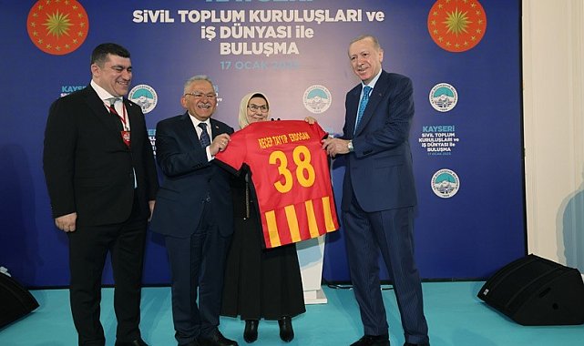 Kayserispor Başkanı Nurettin Açıkalın, Cumhurbaşkanı Recep Tayyip Erdoğan'a takımının sarı-kırmızılı formasını hediye etti.AK Parti Kayseri 8. Olağan İl Kongresi'ne katılmak için Kayseri'ye gelen Cumhurbaşkanı Recep Tayyip Erdoğan; partisinin programının ardından Sivil Toplum Kuruluşları ve İş Dünyası ile Buluşma programına katıldı. Düzenlenen programda sarı-kırmızılı kulübün Başkanı Nurettin Açıkalın, Cumhurbaşkanı Recep Tayyip Erdoğan'a 38 sırt numaralı Kayserispor forması hediye etti.Başkan Nurettin Açıkalın yaptığı paylaşımda, "Cumhurbaşkanımız Recep Tayyip Erdoğan'ın Kayserispor'a göstermiş olduğu yakın ilgiden dolayı teşekkür ederim" dedi.