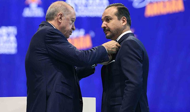 Cumhurbaşkanı Recep Tayyip Erdoğan, İYİ Parti'den istifa eden Kürşad Zorlu'ya AK Parti Ankara 8. İl Kongresi'nde rozetini taktı.