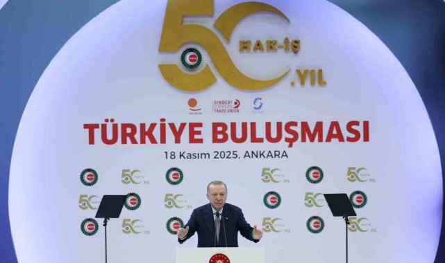 Cumhurbaşkanı Recep Tayyip Erdoğan, "Hepimizi sıkıntıya sokan hayat pahalılığı meselesini mutlaka çözeceğiz. Tek haneli enflasyon hedefimize ulaşmak için önümüzde kat etmemiz gereken bir yol olduğunun elbette bilincindeyiz. Ama bu yolu sabırla yürüyecek güç de, irade de, bizde hamdolsun mevcut. Allah'ın izniyle bu yolu yürüyecek ve hedefimize vasıl olacağız" dedi.Cumhurbaşkanı Recep Tayyip Erdoğan, HAK-İŞ 50'nci kuruluş yıldönümü programında konuştu. Cumhurbaşkanı Erdoğan, "HAK-İŞ Konfederasyonu'nun 50'nci kuruluş yıldönümü programında sizlerle beraber olmaktan büyük bahtiyarlık duyuyorum. HAK-İŞ'e ilk günden beri dirayetle sürdürdüğü emek, demokrasi, özgürlük ve adalet mücadelesi için öncelikle teşekkür ediyorum. 50'nci yılın, Hak-İş camiasıyla birlikte sendikalarımız, emekçilerimiz, çalışma hayatımız, ülkemiz ve milletimiz için hayırlı olmasını diliyorum. Türkiye'de kardeş kavgasının zirve yaptığı bir dönemde, bir nevi kardeşlik ve barış ocağı olarak kurulan HAK-İŞ Konfederasyonunun faaliyetlerinde emeği geçen herkesi yürekten tebrik ediyorum. HAK-İŞ çatısı altında emekçinin davasını; hakkın, hakikatin ve adaletin davasını savunanlardan ebedi aleme göç edenlere Rabbimden gani gani rahmet niyaz ediyorum. HAK-İŞ'in eski Genel Başkanı, Çalışma Bakanımız, kıymetli yol ve dava arkadaşımız Necati Çelik'i, bir kez de sizlerin huzurunda minnetle anıyorum. Hayatta olan dostlarımıza, büyüklerimize ve kardeşlerimize hayırlı, uzun, bereketli ömürler temenni ediyorum. Yine bu vesileyle özellikle iş kazalarında yitirdiğimiz işçi kardeşlerimizi rahmetle yad ediyor, Allah onlardan da razı olsun, diyorum. HAK-İŞ bünyesinde örgütlü sendikal mücadeleye katılan 81 ilimizdeki 850 bin kardeşimin her birine buradan selam ve muhabbetlerimi gönderiyorum" dedi.Türkiye'nin bugünlere gelmesine katkı sunanların en başında işçilerin, çalışanların, emekçilerin geldiğini belirten Cumhurbaşkanı Erdoğan, "Bugün şunu çok net bir şekilde görüyor ve gönül rahatlığıyla söylüyorum: Şimdiye kadar olduğu gibi, Türkiye Yüzyılında da şeref hakkı, el emeğiyle, göz nuruyla, alın teriyle helal rızkını kazanan siz emekçilerimizin olacaktır. Hükümet olarak bunun için canla, başla çalışmaya devam edeceğiz. Hangi sendika bünyesinde olursa olsun, ülkemiz ve milletimiz için çalışan tüm işçi kardeşlerimi bir kez daha saygıyla selamlıyor; Türkiye'ye yaptıkları eşsiz hizmetlerden ötürü her birine şükranlarımı ifade ediyorum. Burada şu gerçeğin altını çizmek istiyorum: Örgütlü emek ve hak mücadelesi için sendikalar elbette vazgeçilmezdir. Fakat, unutmayalım ki, sendikalarımızın varlığı işçi ile kaimdir, emekçi ile kaimdir. İşçi olduğu için, emekçi örgütlendiği için sendikalar vardır. Sadece sendikaların değil, son tahlilde işverenin varlığı da, o işi yapacak insan unsuruyla kaimdir. Biz bunları birbirine hasım gören, birbirinin adeta kanlı-bıçaklısı gören kökü dışarıda ideolojik yaklaşımları reddediyoruz. İşçiyle işvereni düşmanlaştıran anlayışın, şöyle bir geriye baktığımızda, emek mücadelesine katkıdan ziyade zarar verdiğini görüyoruz. Şurası bir gerçek ki; alın teri ve emek, hiçbir ideolojiye, hiçbir hizbe, hiçbir klik ve gruba ipotek edilemeyecek kadar kutsaldır, yücedir, hürmete layıktır" açıklamasını yaptı.İşçi ve işveren arasındaki ilişkinin, ancak "hak temelli" bir bakış açısıyla ele alındığında doğru bir şekilde anlaşılabilir olacağına vurgu yapan Cumhurbaşkanı Erdoğan," Bizim medeniyetimizde işçinin, işveren üzerinde hakkı olduğu gibi, işverenin de işçi üzerinde hakkı vardır. Çalışma barışının sağlanması ancak bu şekilde mümkün olacaktır. Çalışma barışı taraflar arasında denge kurmakla, adaletli davranmakla, işverenin, işçinin, üretimden ve hizmetlerden yararlanan tüketicinin müşterek haklarını korumakla temin edilebilir. Bu noktada kurulduğu günden beri, soğuk savaş ürünü ideolojik sendikal anlayışlara prim vermeden ilkeli, tutarlı ve istikrarlı bir sendikacılık örneği sergileyen, 50 senedir "erdemli sendikacılığın" ülkemizdeki sancaktarlığını üstlenen HAK-İŞ'i huzurlarınızda bir kez daha tebrik ediyorum" diye konuştu.Nasıl hakkı, adaleti, özgürlüğü, alın terini savunmak bir erdemse; haksızlığa, zorbalığa, her türlü emek istismarına karşı çıkmanın da aynı ölçüde erdem, fazilet; insanlık adına verilmiş onurlu bir mücadele olduğunu dile getiren Cumhurbaşkanı Erdoğan," Bunun muhatabı kimi zaman hak-hukuk tanımayan patronlar olabilir. Kimi zaman gözünü para hırsı bürümüş sermaye sahipleri olabilir. Kimi zaman ezilenlerin kaynaklarını sömüren emperyalistler olabilir. Kimi zaman elindeki gücü hoyratça kullanan küresel lobiler olabilir. Kimi zaman milletin muazzez iradesine el uzatan darbeciler olabilir.Kimi zaman mazlumların oluk oluk kanını akıtan zalimler olabilir. İşte bunlara karşı durmak da en az emek mücadelesi, ücret mücadelesi kadar mühimdir, değerlidir; insan olarak bizim asli vazifemizdir. Bunu özellikle şunun için söylüyorum. Bakınız, biraz önce HAK-İŞ'in 50 yılını anlatan kısa filmi hep beraber izledik. Yarım asırlık mücadelenin serencamına bir kere daha tanıklık ettik. Her açıdan gurur verici, şahsiyetli, haysiyetli bir emek mücadelesinin HAK-İŞ çatısı altında sabırla, samimiyetle, kararlılıkla yürütüldüğünü görüyoruz. HAK-İŞ köklü bir yürüyüşün, alın teriyle yoğrulmuş bir davanın adıdır. Türkiye'nin sancılı ve sıkıntılı zamanlardan geçtiği, Sabah erken uyananın demokrasi ve milli irade gaspına teşebbüs ettiği, Sokaklarımızda kaos ve çatışmanın hüküm sürd