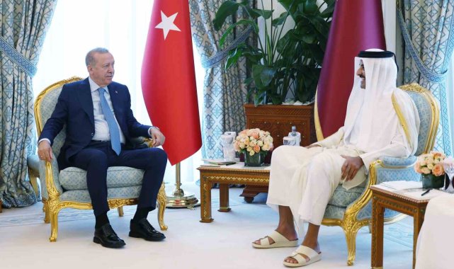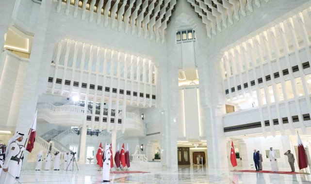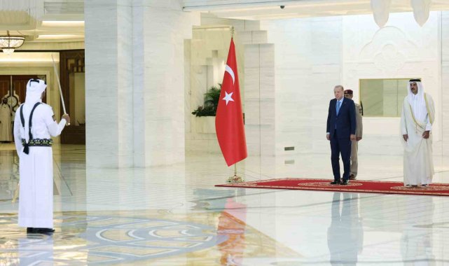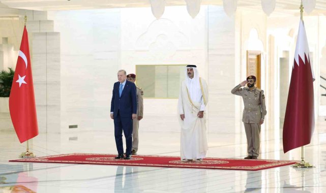 Cumhurbaşkanı Recep Tayyip Erdoğan, Katar'ın başkenti Doha'da Katar Emiri Şeyh Tamim bin Hamad Al Thani tarafından resmi törenle karşılandı.Cumhurbaşkanı Recep Tayyip Erdoğan, Kuveyt temaslarını tamamlayarak dün akşam saatlerinde Katar'a geldi. Cumhurbaşkanı Erdoğan, Katar'ın başkenti Doha'daki Emirlik Divanı'nda Katar Emiri Şeyh Tamim bin Hamad Al Thani tarafından resmi törenle karşılandı. Cumhurbaşkanı Erdoğan, iki ülke marşlarının okunduğu törende karşılama kıtasını selamladı. Erdoğan ve Katar Emiri Al Thani, resmi törenin ardından ikili görüşmeye geçti. Görüşmede MİT Başkanı İbrahim Kalın ve Dışişleri Bakanı Hakan Fidan hazır bulundu. İkili görüşme sonrası heyetler arası görüşmenin gerçekleştirilmesi bekleniyor. Katar temasları kapsamında Erdoğan'ın, Türkiye-Katar 11. Yüksek Stratejik Komite Toplantısı'na iştirak etmesi ve anlaşmaların imza törenine katılması bekleniyor.Cumhurbaşkanı Erdoğan ile eşi Emine Erdoğan, Dışişleri Bakanı Hakan Fidan, Enerji ve Tabii Kaynaklar Bakanı Alparslan Bayraktar, Hazine ve Maliye Bakanı Mehmet Şimşek, Milli Savunma Bakanı Yaşar Güler, Sanayi ve Teknoloji Bakanı Mehmet Fatih Kacır, Ticaret Bakanı Ömer Bolat, AK Parti Genel Başkan Yardımcısı ve Parti Sözcüsü Ömer Çelik, AK Parti Genel Başkan Yardımcısı ve Sağlık Politikaları Başkanı Halit Yerebakan, AK Parti Grup Başkanvekili Özlem Zengin, Millî İstihbarat Teşkilatı (MİT) Başkanı İbrahim Kalın, Cumhurbaşkanlığı İletişim Başkanı Burhanettin Duran, Cumhurbaşkanlığı Savunma Sanayii Başkanı Haluk Görgün ve Cumhurbaşkanı Dış Politika ve Güvenlik Başdanışmanı Akif Çağatay Kılıç da Doha'ya geldi.Cumhurbaşkanı Erdoğan Katar temaslarının ardından Umman'a geçecek.