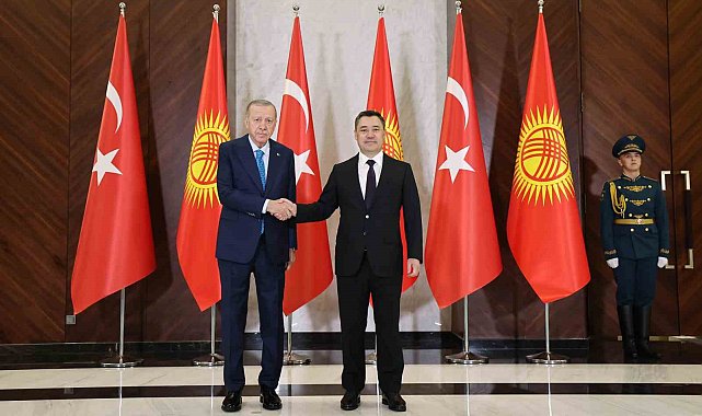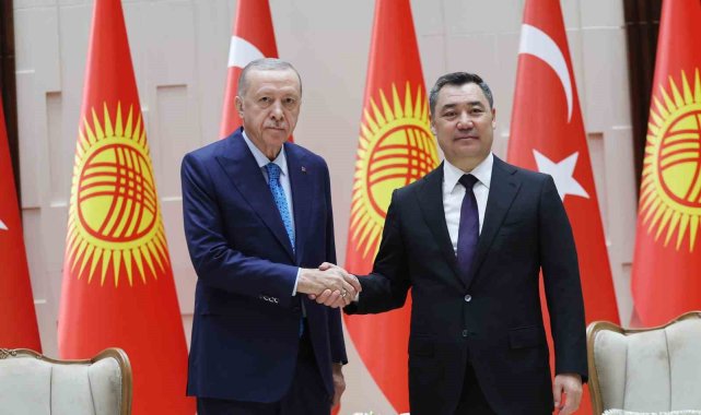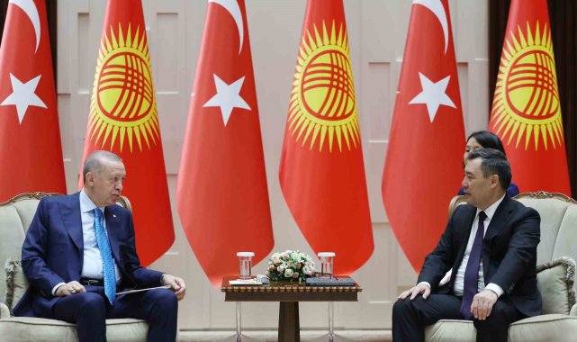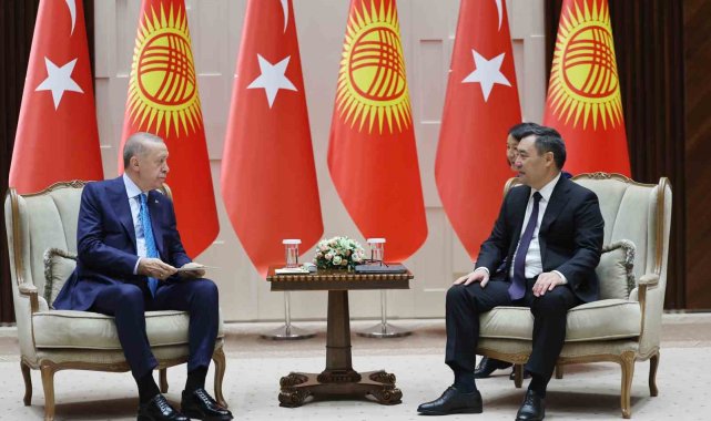 Cumhurbaşkanı Recep Tayyip Erdoğan, Kırgızistan Cumhurbaşkanı Sadır Caparov ile Kırgızistan'ın başkenti Bişkek'teki Intımak Ordo Cumhurbaşkanlığı Sarayı'nda görüştü.Cumhurbaşkanı Recep Tayyip Erdoğan, Türk Devletleri Teşkilatı (TDT) Devlet Başkanları Konseyi 11. Zirvesi'ne katılmak üzere geldiği Kırgızistan'ın başkenti Bişkek'te temaslarını sürdürüyor. Cumhurbaşkanı Erdoğan, Intımak Ordo Cumhurbaşkanlığı Sarayı'nda Kırgızistan Cumhurbaşkanı Sadır Caparov tarafından resmi törenle karşılandı. İki lider resmi karşılama töreninin ardından baş başa görüşme gerçekleştirdi.Erdoğan ve Caparov, baş başa görüşmelerinin ardından Türkiye-Kırgızistan Yüksek Düzeyli Stratejik İşbirliği Konseyi'nin 6. Toplantısı'na başkanlık etti.