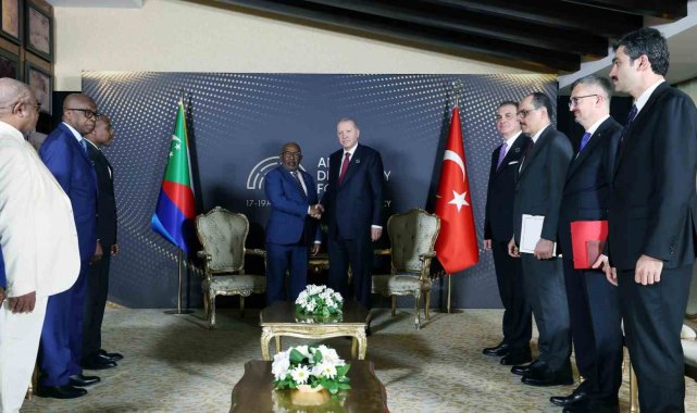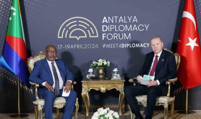 Cumhurbaşkanı Recep Tayyip Erdoğan, 5. Antalya Diplomasi Forumu (#ADF2026) için Türkiye'de bulunan Komorlar Birliği Cumhurbaşkanı Assoumani Azali ile bir araya geldi. Görüşmede Türkiye ile Komorlar Birliği ikili ilişkileri ve bölgesel konular ele alındı.Cumhurbaşkanı Erdoğan görüşmede, Türkiye ile Komorlar Birliği arasında ilişkilerin geliştirilmesi için ticaret, altyapı, savunma sanayi alanlarında iş birliğinin artırılmasını hedeflediklerini ifade etti.Erdoğan, Filistin'in haklı davasının desteklenmesi konusunda iki ülkenin her zeminde dayanışmasını artırmasının önemli olduğunu, Gazze'de huzur ve istikrarın sağlanması için çalışmaya devam edeceğimizi belirtti.