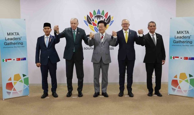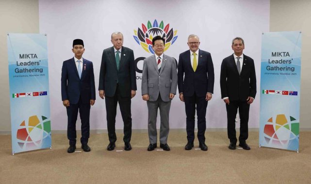 Cumhurbaşkanı Recep Tayyip Erdoğan, G20 Liderler Zirvesi kapsamında, Meksika, Endonezya, Güney Kore, Türkiye ve Avustralya arasındaki gayriresmi istişare ve eş güdüm platformu MIKTA'nın liderleriyle ve G20'ye katılan temsilcileriyle bir araya geldi.Cumhurbaşkanı Recep Tayyip Erdoğan, G20 Liderler Zirvesi kapsamında bulunduğu Güney Afrika'nın Johannesburg kentinde temaslarına devam ediyor. Cumhurbaşkanı Erdoğan, Meksika, Endonezya, Güney Kore, Türkiye ve Avustralya arasındaki gayriresmi istişare ve eş güdüm platformu MIKTA üyesi ülkelerin G20'ye katılan ülkelerin liderleri ve temsilcileriyle bir araya geldi.Cumhurbaşkanı Erdoğan, Endonezya Devlet Başkan Yardımcısı Gibran Rakabuming Raka, Güney Kore Devlet Başkanı Lee Jae Myung, Avustralya Başbakanı Anthony Albanese, Meksika Hazine Bakanı Edgar Amador ile birlikte fotoğraf çektirdi.