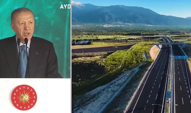 — Recep Tayyip Erdoğan (@RTErdogan) January 10, 2025"Bugün Aydın-Denizli Otoyolu'nun resmî açılışını yapıyoruz" diyen Cumhurbaşkanı Erdoğan, "Böylece Denizli'den Aydın ve İzmir'e kesintisiz otoyol ağıyla hızlı ve konforlu ulaşım imkânı sunuyoruz. Aydın-Denizli arasında 1,5 ile 2 saat süren yolculuk bu vesileyle 55 dk'ye inmiş oluyor. İzmir üzerinden İstanbul-İzmir Otoyolu ile Marmara Bölgesi ve Avrupa sınırına kadar direkt otoyol bağlantısını sağladık" diye konuştu. "YOL OLMADAN BUNLARIN HİÇBİRİ OLMAZ"Her vesileyle bir gerçeği ısrarla hatırlattığını ifade eden Cumhurbaşkanı Erdoğan, "Yol medeniyettir. Yol demek ulaşım demektir." Sanayi, üretim, turizm, kültür, emniyet, kalkınma demektir. Yol demek, bölgesel ve küresel ekonomiyle entegrasyon demektir. Yol olmadan bunların hiçbiri olmaz. Aynı durum Aydın-Denizli otoyolu içinde geçerlidir." dedi.Ulaştırma yatırımlarını eleştirenlere de göndermede bulunan Erdoğan, "Sizinle bizim aramızda sadece vizyon ve ufuk farkı yok. Sizinle bizim aramızda niyet farkı, anlayış farkı, zihniyet farkı var. Biz kule deyince para kulesi, belediye deyince yeme aklına gelen bir kadro değiliz. Hiçbir zaman da olmadık. Biz 22 yıldır Türkiye'yi büyütmek ve kalkındırmak için çalışıyoruz. Siyasette bizim tek bir gayemiz vardır. O da işte bugün burada olduğu gibi ülkemizi ve şehirlerimizi hak ettiği yatırımlarla buluşturmaktır." diye konuştu.